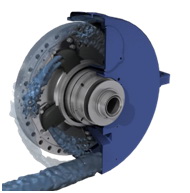 通過回轉體-轉鼓和卸料螺旋的高速旋轉使其內的固液混合物隨之高速旋轉形成液環并產生較高的離心力,通過此較高的離心力作用加速固液的沉降分離。其中比重較重的固體顆粒沉降在液環層的外圈,即沿轉鼓的內壁形成泥環層,通過卸料螺旋與轉鼓的差速由卸料螺旋將泥推出回轉體。液體環通過堰池口溢流出回轉體之外。